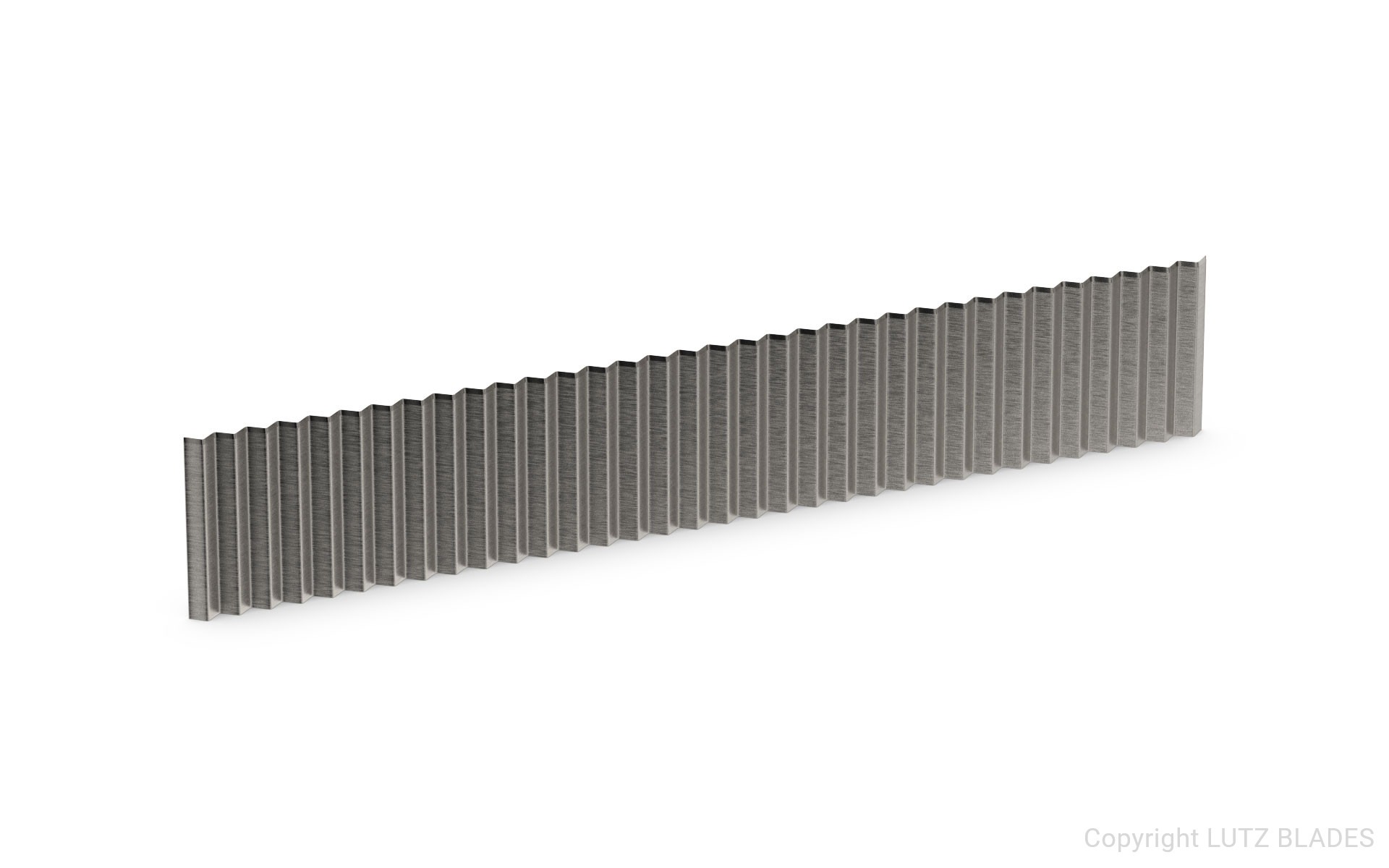 The potato chip blade-2511 from LUTZ BLADES is used for potato processing in the food industry. The blade is made of carbon steel and is available without coating. With a length of 107.80 mm, a width of 18.90 mm and a thickness of 0.13 mm, this blade specializes in cutting potatoes into specific shapes or sizes. This blade is used for the production of corrugated chips. It also fulfills individual customer requirements.